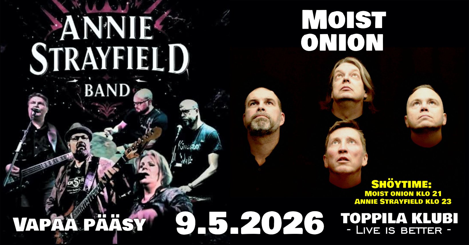 Annie Strayfield Band & Moist Onion Klubilla 9.5.2026