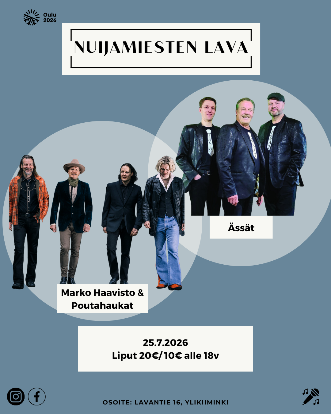Lauantaina 25.7. Nuijamiesten lavalla nähdään mielenkiintoinen ja varmasti tunnelmallinen ilta, kun esiintymässä ovat Marko Haavisto & Poutahaukat sekä Ässät. Tiedossa on laadukasta livemusiikkia ja hieno kesäilta Nuijamiesten ainutlaatuisessa ympäristössä.