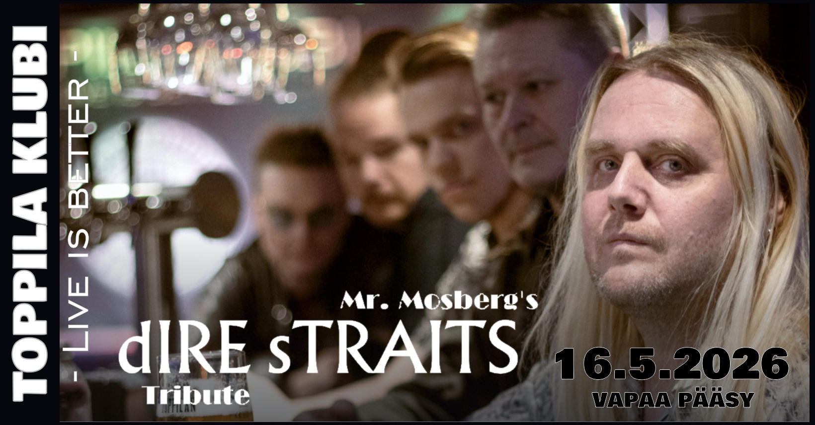 Mr. Mosberg's Dire Straits tribute • Toppila Klubi, Oulu • 16.5.2026 klo 21:00 • Vapaa pääsy • K-18