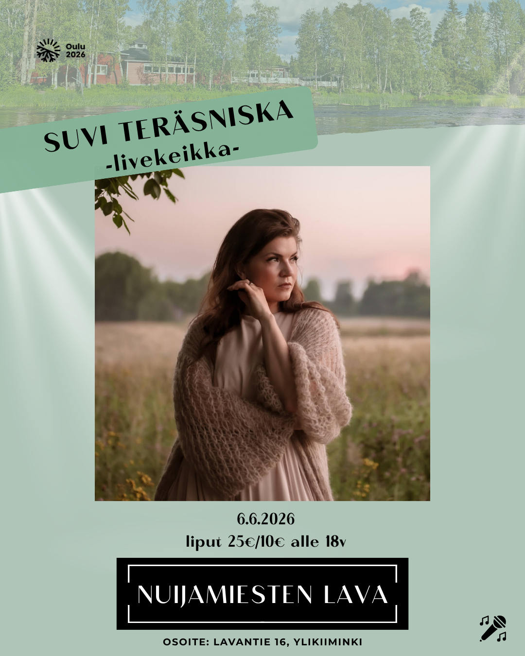 Lauantaina 6.6. Nuijamiesten lavalla koetaan upea livekeikka, kun lavalle nousee Suvi Teräsniska. Luvassa on koskettavia tulkintoja, isoja hittejä ja ilta, joka kerää varmasti paljon yleisöä paikalle.